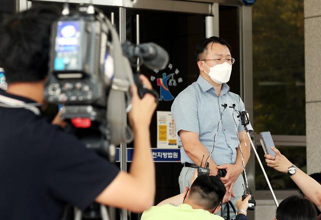 '계곡 살인' 사건 피해자 윤모씨의 매형 A씨가 30일 오전 인천시 미추홀구 인천지방법원에서 열린 이은해(31·여)씨와 공범 조현수(30·남)씨의 결심공판을 참관한 뒤 법원 밖에서 심경을 밝히고 있다. 검찰은 이은해씨와 조현수씨에게 모두 무기징역을 구형했다. [사진=연합뉴스]
